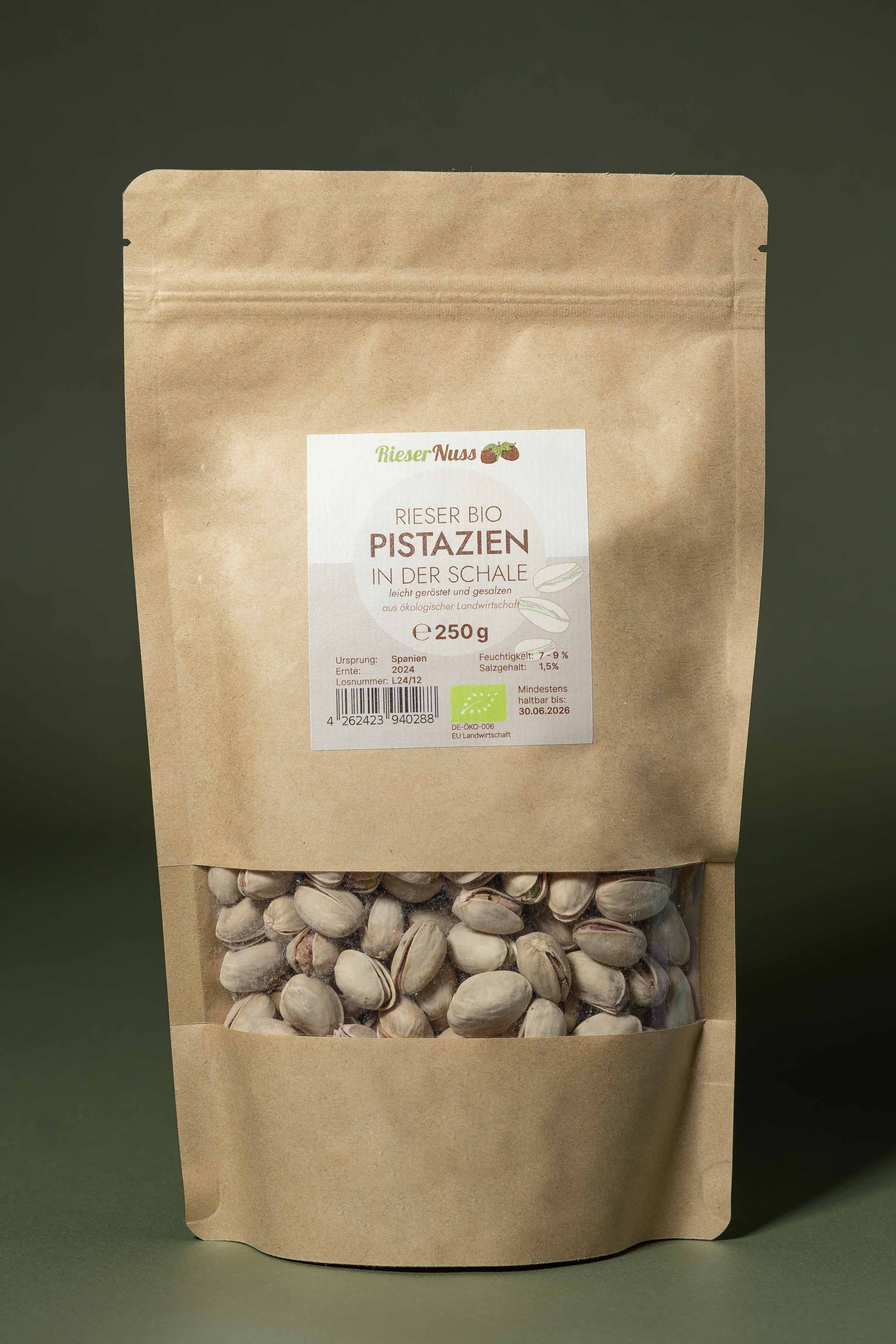 Unsere Bio Pistazien sind in praktischen, wiederverschließbaren Verpackungen à 250 g, 500 g und 1 kg erhältlich – ideal für den täglichen Genuss und zur sicheren Aufbewahrung. Für größere Mengen bieten wir unsere Pistazien auch in 5-kg-Foliensäcken an – perfekt für den Vorratskauf oder den Einsatz in der Weiterverarbeitung.