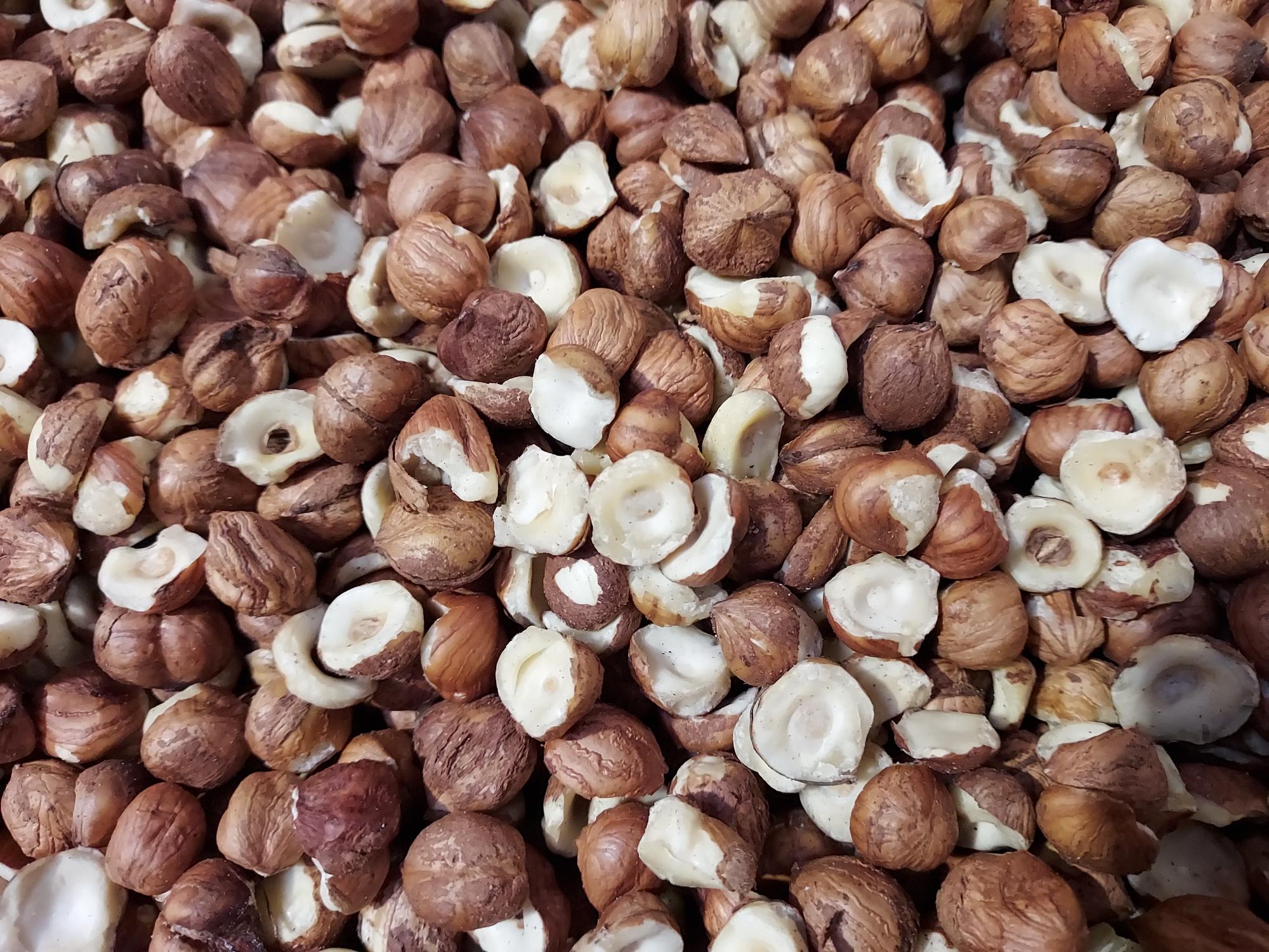 Haselnusskerne naturbraun, Bayern - Deutschland, Sortierung 11-15mm, ca. 15 - 30% halbe Kerne