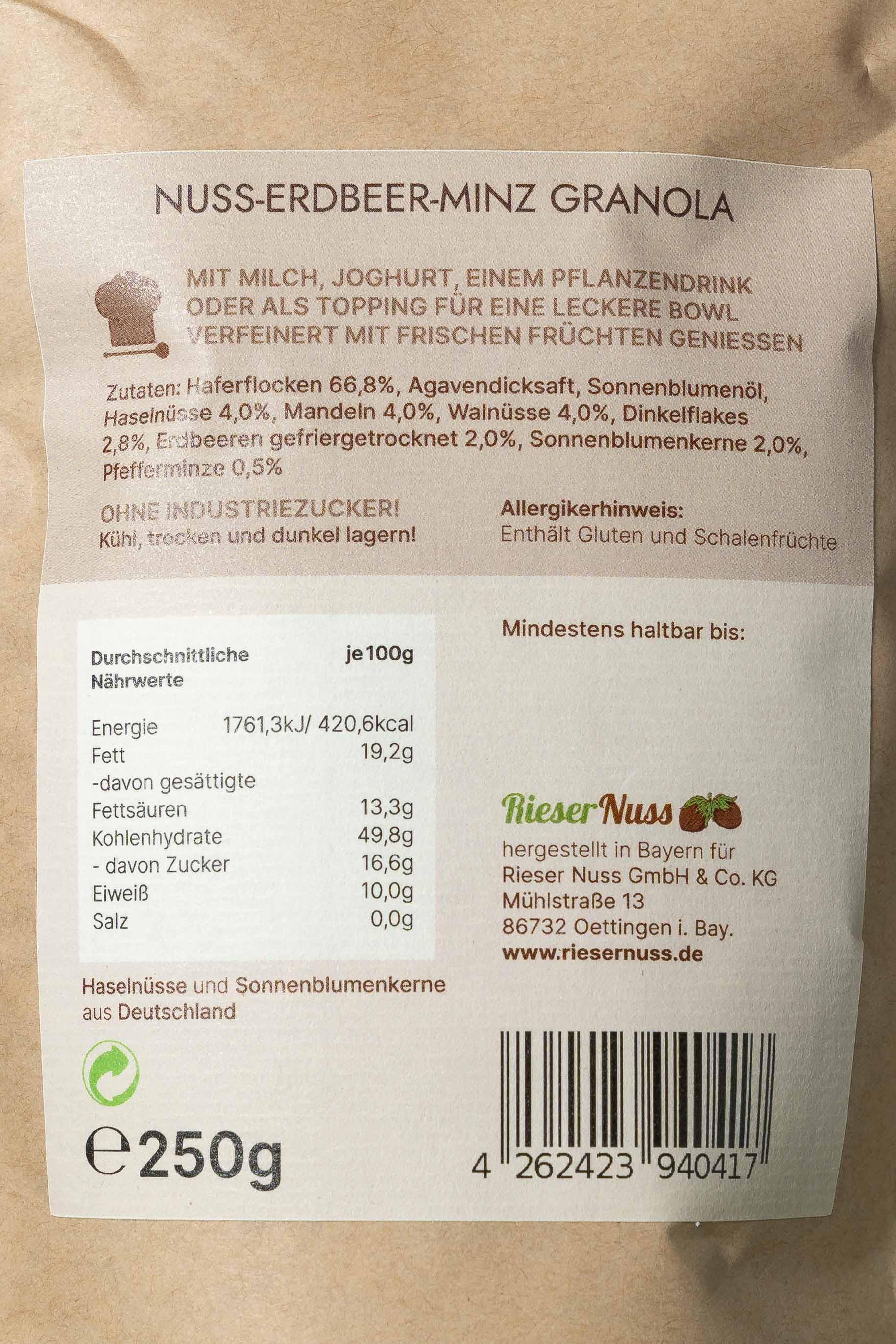 Produktinformationen " Nuss-Erdbeer-Minz Granola 250 g"