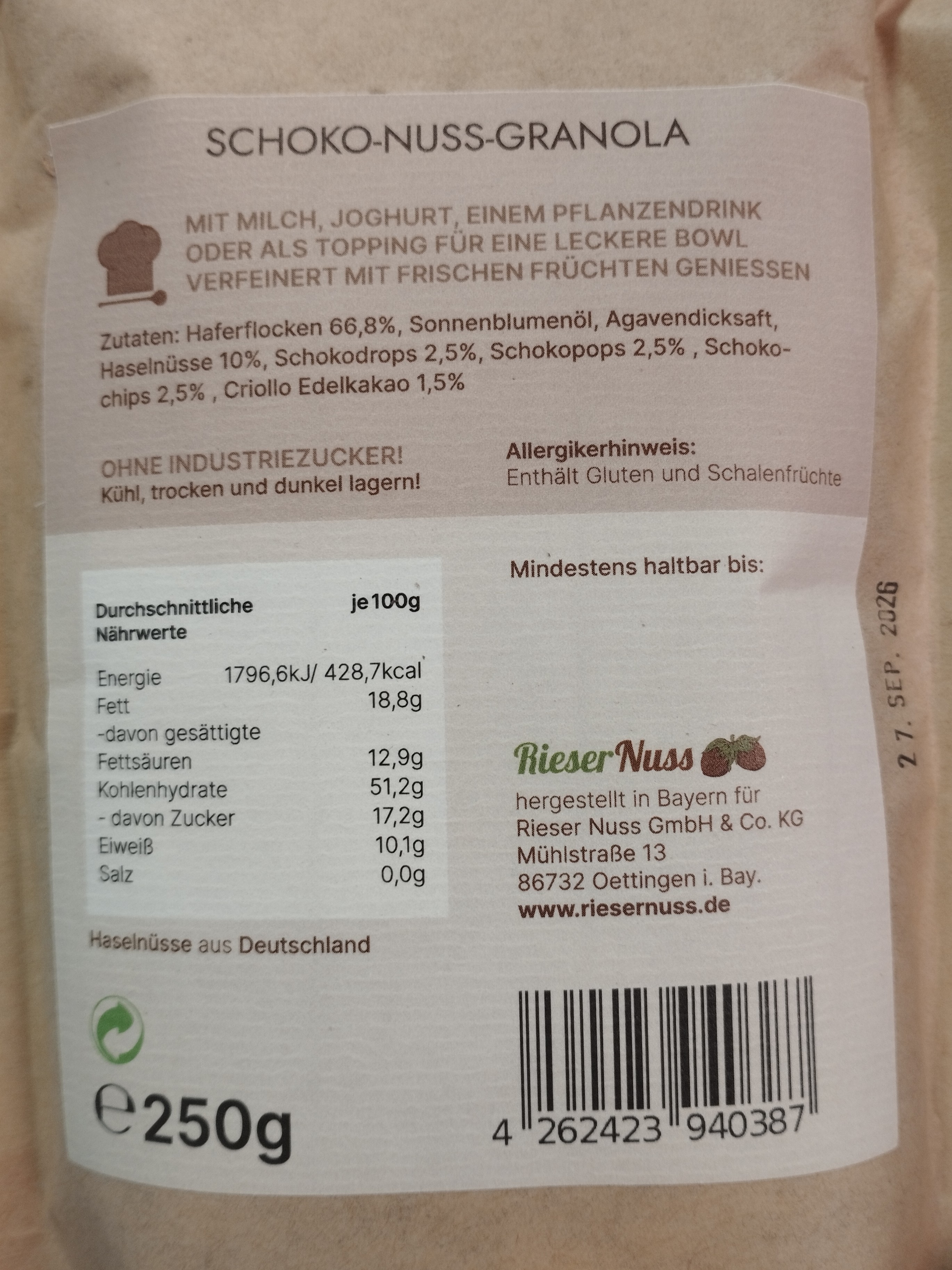 💡 Genießer-Tipp: Ob mit Milch, Joghurt, einem Pflanzendrink oder als Topping für eine fruchtige Bowl – unser Schoko-Nuss-Granola passt immer!