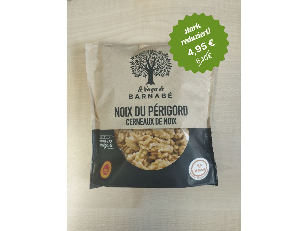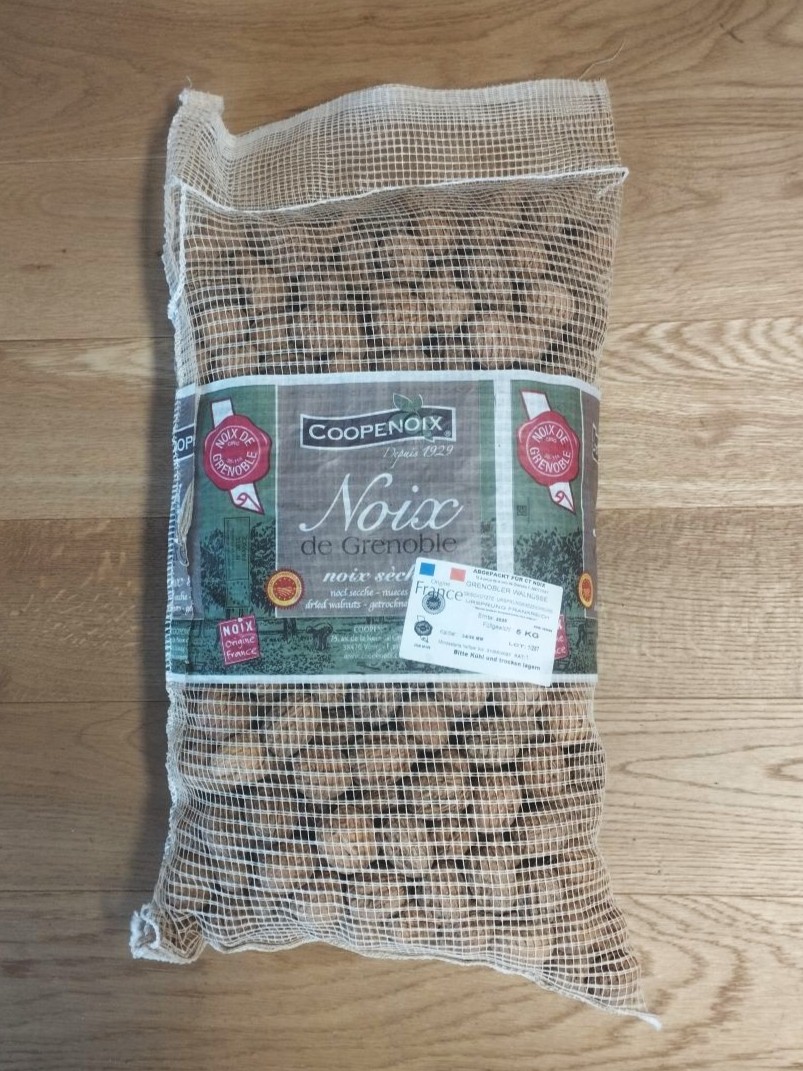 Etwa 50 Prozent unserer Walnüsse in der Schale beziehen wir aus Grenoble, während wir den Rest von der Fa. Perlim aus dem Périgord beziehen. Was uns an den französischen Walnüssen begeistert, ist ihre Knackigkeit und ihre geschützte Ursprungsbezeichnung (AOP). Die Walnüsse werden trocken mit der Schale verkauft.